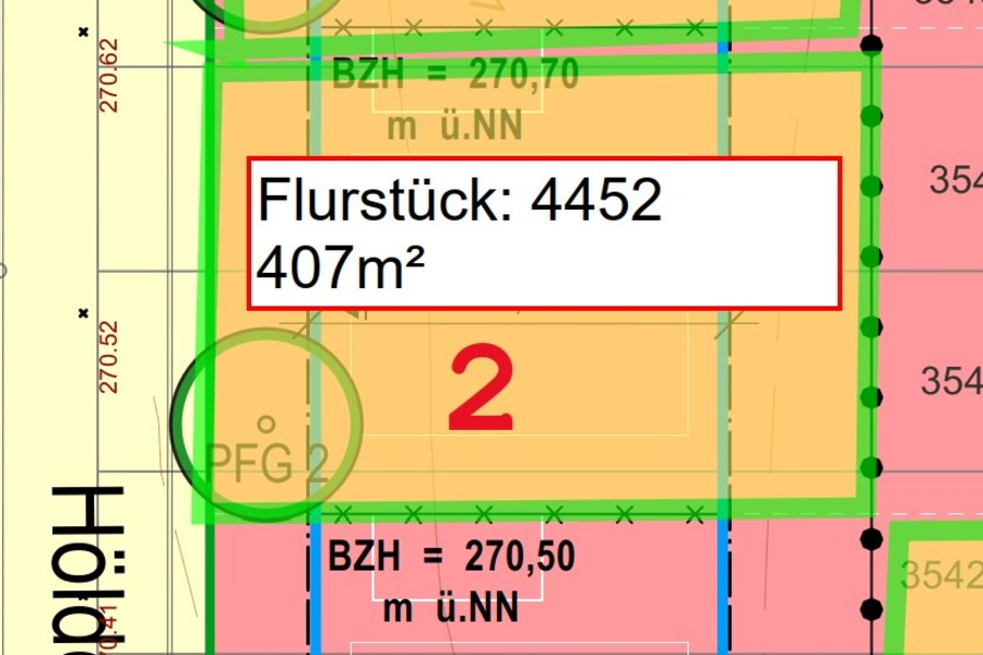 Der Bauplatz 02 (Flurstück 4452/0) befindet sich am Anfang der Baugebietes und zwar in dem schon bestehenden Hölderlinweg.