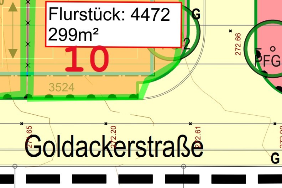 Der Bauplatz 10 (Flurstück 4472/0) befindet sich in der neu entstehenden Straße "Mittlerer Hohrain".