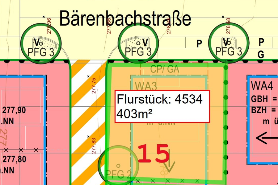 Der Bauplatz 15 (Flurstück 4534/0) befindet sich am der Anfang der neu entstehenden Straße "Oberer Hohrain".