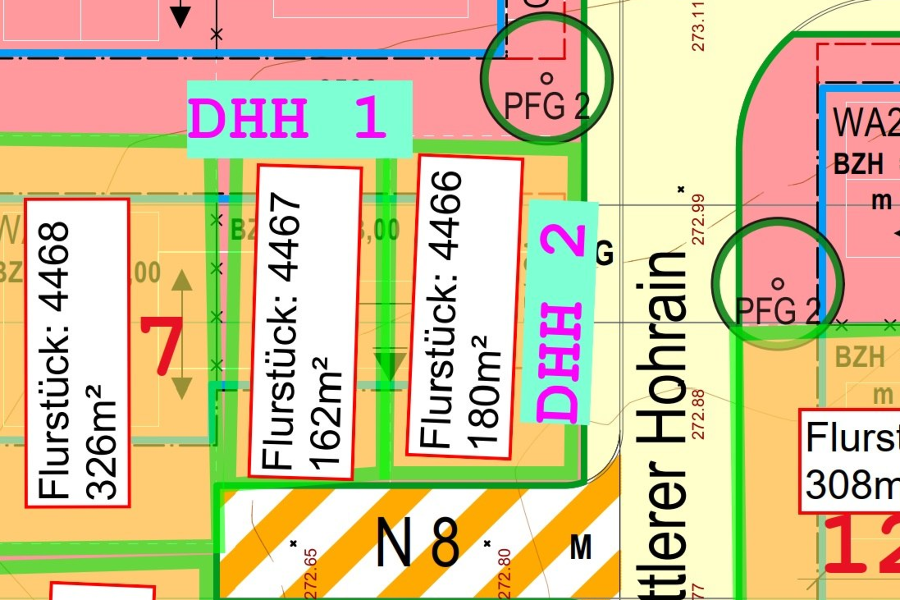 Auf dem Bauplatz DHH 1 kann man eine Doppelhaushälfte bauen.