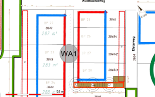 Die Flurstücke Flst. Nr. 3827-3829 sowie 3842-3844 (Bauplätze 19-24) sind bereits vermessen und entsprechend im Grundbuch gebildet. Die Erschließung des Baugebietes ist abgeschlossen. Die einzelnen Bauplätze können nach Beurkundung des Kaufvertrages bebaut werden.