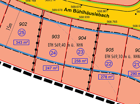 Es kommen 14 Wohnbauplätze für Einzelhäuser und 10 Wohnbauplätze für Doppelhaushälften in dieser Ausschreibung zum Verkauf.