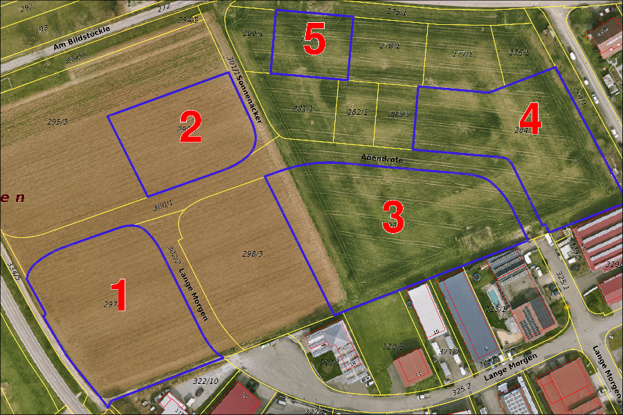 Sollten Sie Interesse an einem dieser gewerblichen Grundstücke bzw. einer Teilfläche eines Grundstücks im Gebiet "Lange Morgen II" haben und Ihr Unternehmen zu den Verkaufskriterien passen, dann bewerben Sie sich bitte ab Dienstag, den 24.02.2026 bis spätestens Montag, den 06.04.2026, direkt hier. Wir werden anschließend ab der KW 17 2026 mit allen zu den Suchkriterien passenden Unternehmen persönliche Einzelgespräche führen, um die Vergabe der Gewerbeflächen vorzubereiten. Bezüglich eines Terminvorschlags kommen wir auf Sie zu. Die letztliche Entscheidung über die Vergabe der Gewerbefläche trifft das zuständige gemeinderätliche Gremium auf Grundlage des fachlichen Vorschlags der Verwaltung.
