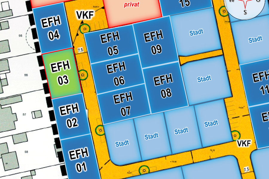 Für dieses Baugebiet können Sie sich während der Bewerbungsphase auf keine konkreten Grundstücke bewerben. Nach der Bewerbungsphase erfolgt die Zuteilung gemäß der ermittelten Rangfolge.
