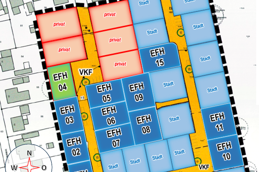 Für dieses Baugebiet können Sie sich während der Bewerbungsphase auf keine konkreten Grundstücke bewerben. Nach der Bewerbungsphase erfolgt die Zuteilung gemäß der ermittelten Rangfolge.