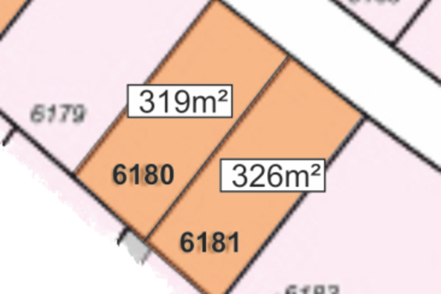 Das Grundstück 6180 ist mit einer sogenannten "Anbaubaulast" an das danebenliegende Baugrundstück Nr. 6181 belastet. Daher ist eine Bebauung mit einer DHH erforderlich.