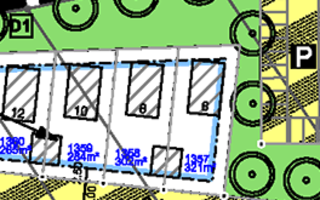 | Grundstücksgrößen: ab 228 m2 bis 638 m2 | |