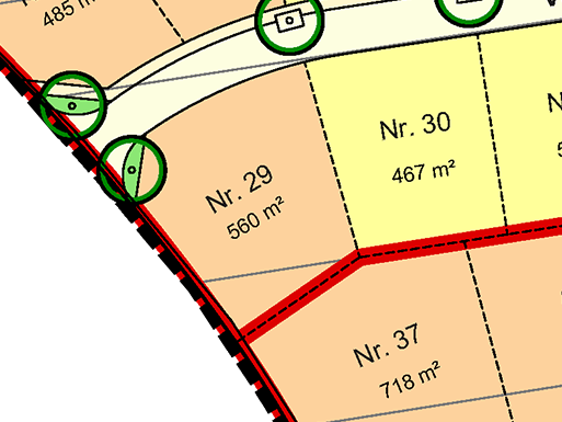 | Grundstücksgrößen: ab 464 m2 bis 825 m2 | |