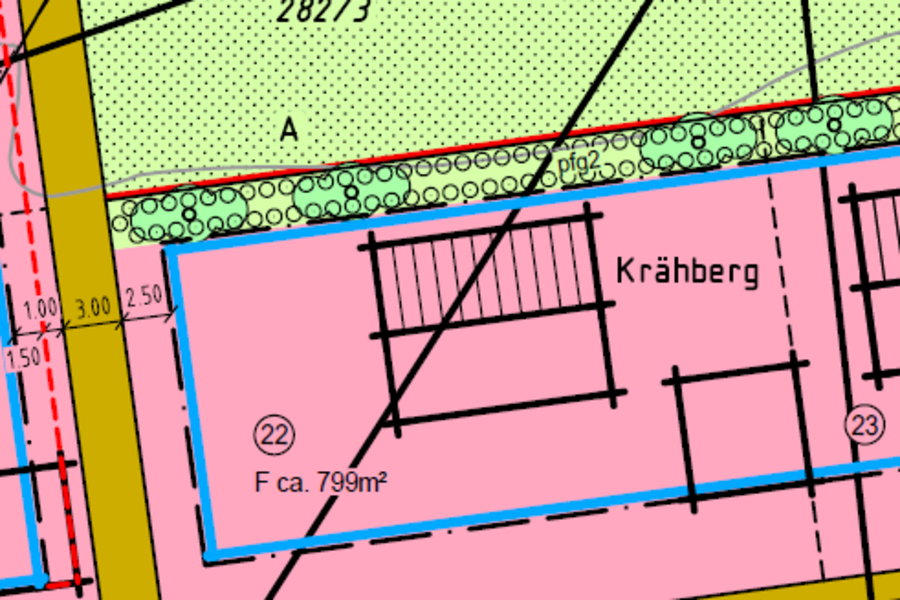 Am nördlichen Ortsrand von Westerstetten entsteht das neue Baugebiet 'Krähberg III - Teil 2'. Geplant sind insgesamt 17 Bauplätze mit Größen zwischen ca. 799 m² und 305 m². Der Bebauungsplan sieht eine Mischung aus Einzel-, Reihen- und Mehrfamilienhäusern vor.