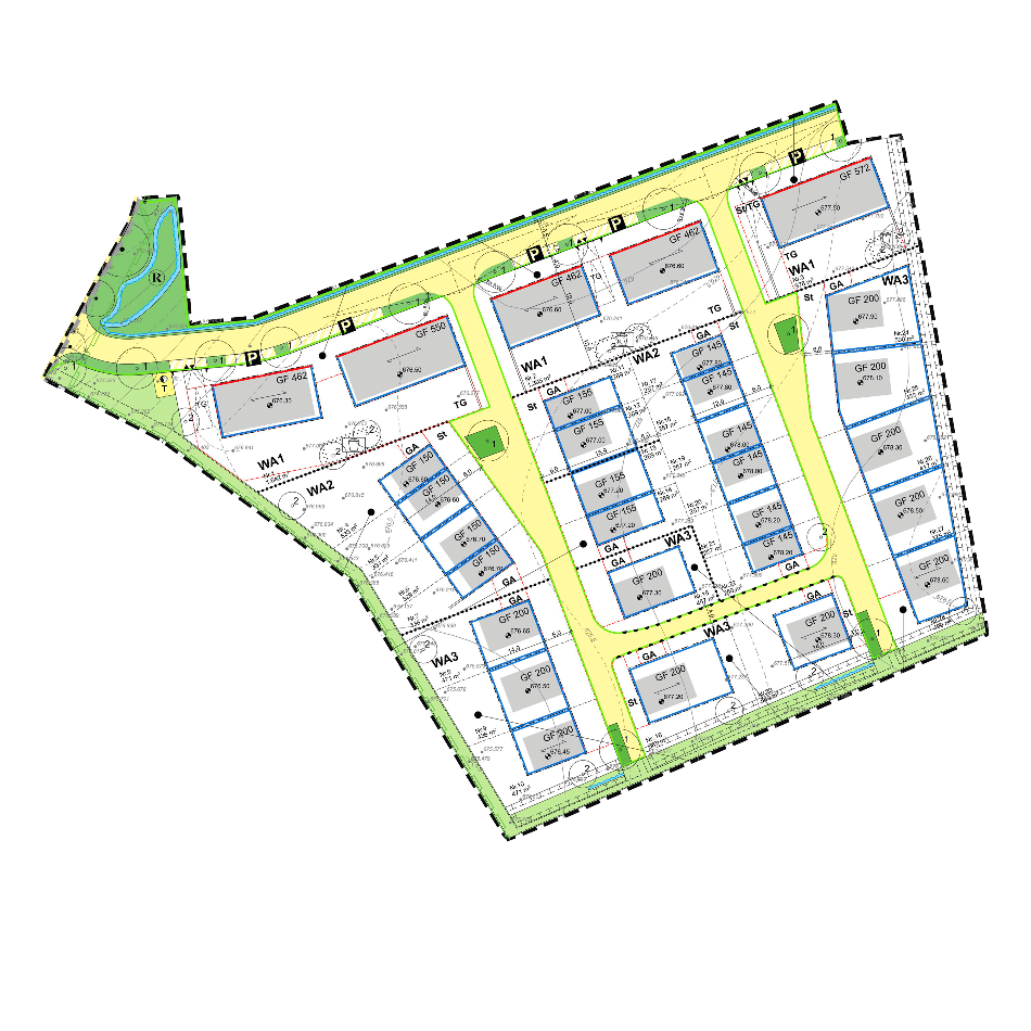 Siehe Bebauungsplan zeichnerischer Teil und textlicher Teil mit seinen textlichen Festsetzungen und den örtlichen Bauvorschriften.