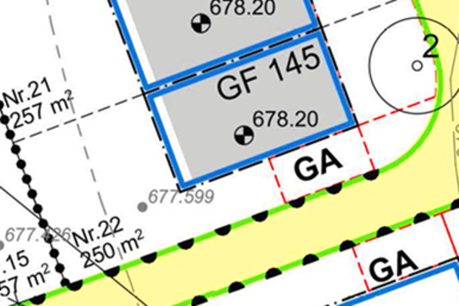 Die baulichen Angaben dienen grundsätzlich zur Orientierung. Die jeweiligen Festsetzungen der Einzelgrundstücke und die sich daraus ergebenden Berechnungen entnehmen Sie aus dem Bebauungsplan.
